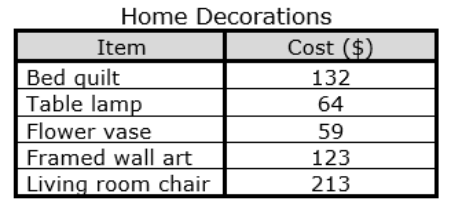 The table shows the costs of some items James is thinking about buying to decorate his home.
