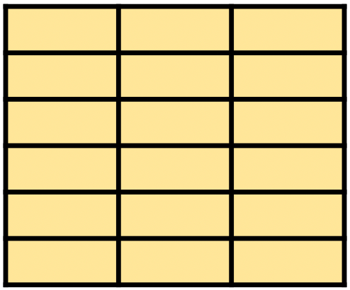 This object has 6 rows and 3 columns, so the area would be found by 6 x 3 = 18.