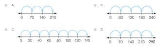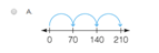 A.  shows the intervals going up by 70 and 3 hops stopping on 210.