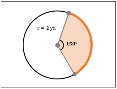 Calculate the LENGTH of the orange arc. You must say your answer in correct units.