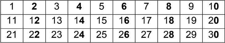 Tom uses this number chart to skip count by 2s from 12. He makes the ones digits of the numbers he counts dark black.