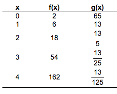f(x)=2(3)^x andg(x)=65(1/5)^x