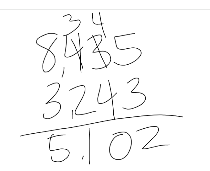 Luke made a mistake when he subtracted 3,243 from 8,445. His work is shown below. What is Luke's mistake? Choose an answer from each list to make each statement true.