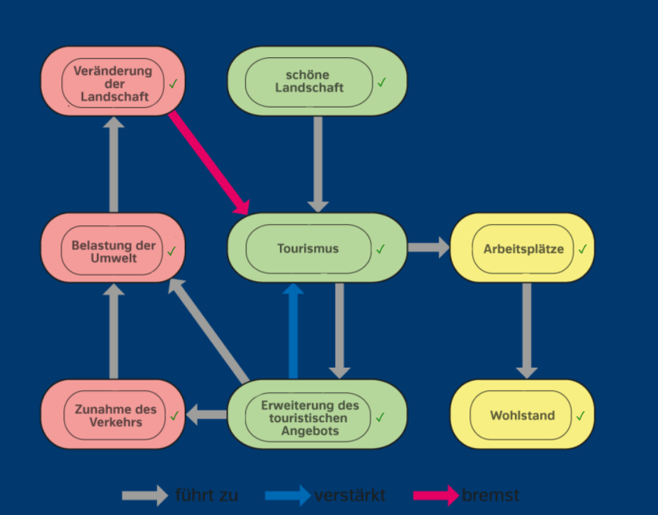 Wenn viele Menschen regelmäßig an einen bestimmten Ort reisen, entstehen dort Hotels, Restaurants, Supermärkte und Geschäfte. Dadurch werden Arbeitsplätze geschaffen, und die Reisenden geben vor Ort viel Geld aus. Das stärkt die finanzielle Lage der Region. Der Tourismus ist somit ein wichtiger Wirtschaftsfaktor.