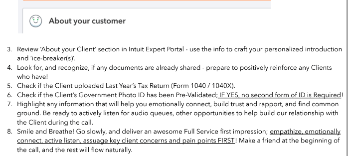 A suggestion from the Call Guide for an activity you can engage in during the 2-minute prep time.