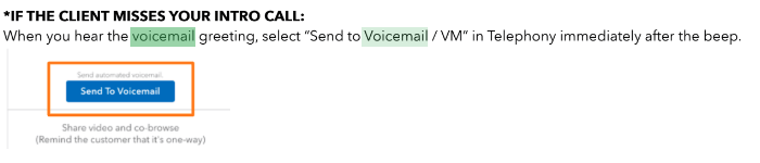 The button you click in Telephony as part of the process followed when a Welcome Call goes to voicemail.