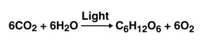 During photosynthesis, carbon dioxide and water combine in the presence of light energy to produce glucose and oxygen.