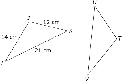 Triangle JKL is rotated,reflected and translated to create TUV, as shown. What is the length of TU?