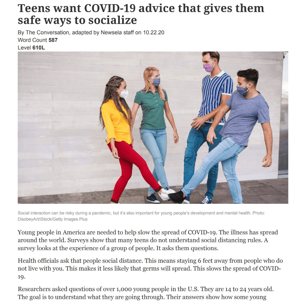 "Teens want COVID-19 advice that gives them safe ways to socialize"