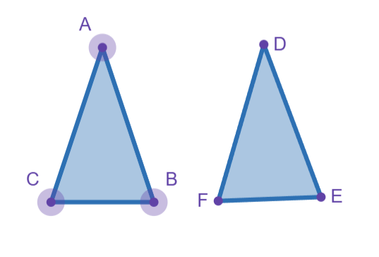 The triangles below are isosceles, where BC and FE are the bases respectively.