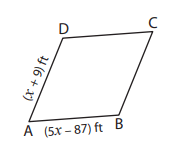 The perimeter of a parallelogram is 45 ft. The side lengths are 2x and 3x. What is x?