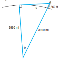 Find s (the arclength) in miles. Round to the nearest tenth.