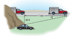 If the speed limit is 55 mph and a ticket is issued for speeds 5 mph or over, The range of angle measurements that the trooper issues a ticket.