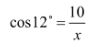 Joe is climbing a ladder that is 12 feet long.  The ladder is 8 feet from the base of a garage, what is the angle formed by the ladder and the ground? Round to the nearest degree.