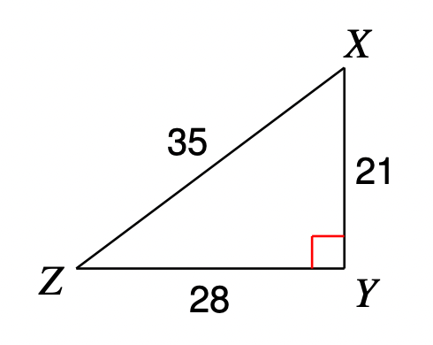 tan(X) = \frac{opposite}{adjacent} = \frac{28}{21} = \frac{7}{3}