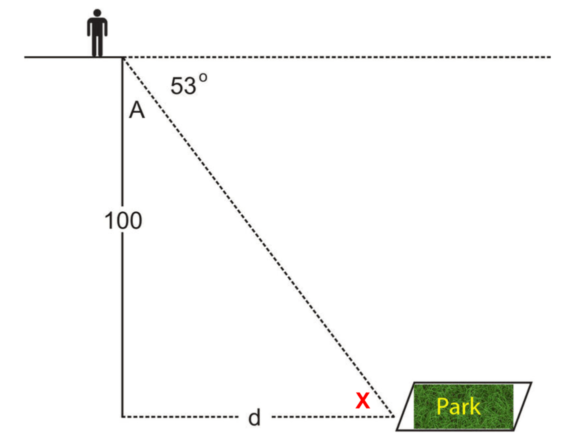 Since the angle of elevation is the same as the angle of depression, x = 53.