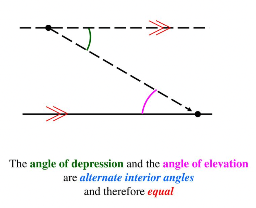 What theorem allows the angle of elevation to equal the angle of depression on a problem?