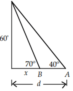 60/(tan40^o)-60/(tan70^o)~~50ft