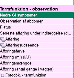 Hvilken data om afføring trækkes ind i PFP'en og bruges til den daglige pleje og behandling.