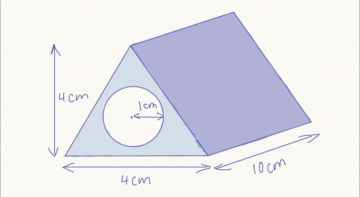 Find the composite volume of the following shape (pi = 3.14):