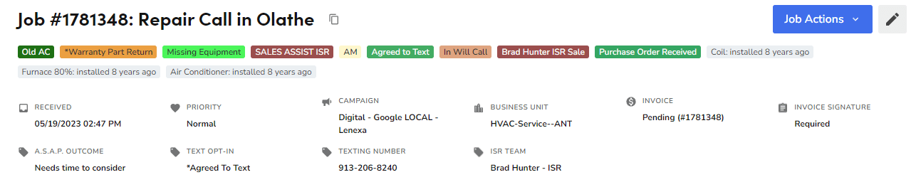 Customer want to cancel a job.