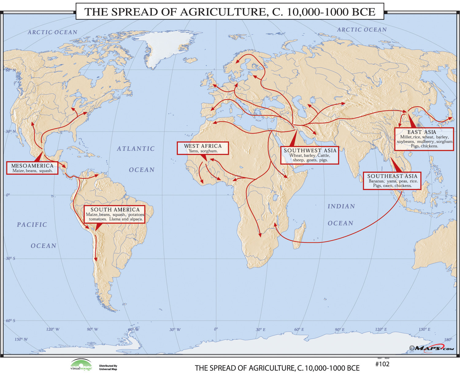 Mesoamerica, South America, West Africa, Southwest Asia, Southeast Asia, East Asia