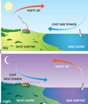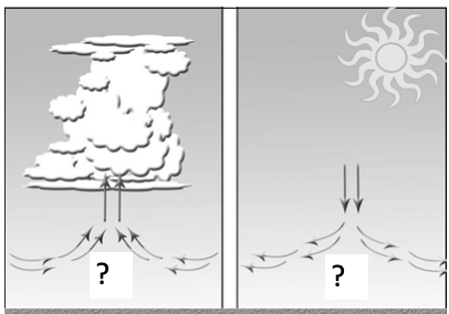 Draw a diagram that shows how unequal heating of the Earth's surface helps to cause wind.