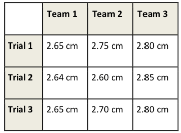 The actual length of the object was 2.20 cm. Which team, if any, had the most accurate results?