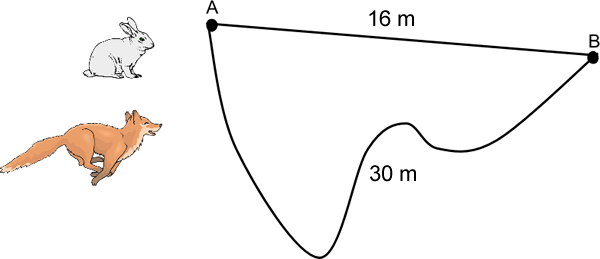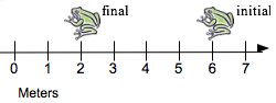 Displacement = 2 m - 6 m = -4 m or 4 meters left