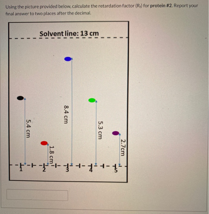 Using the picture provided below, calculate the retardation factor (Rf) for Protein #2. Give your answer to 2 decimal places
