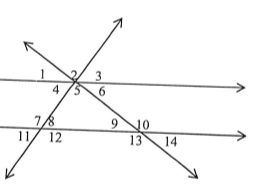 A transversal is a line that cuts across (intersects) two parallel lines.