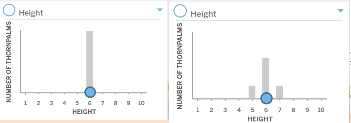 How has the variation changed in these histograms? (use high, low, no to describe the variation)