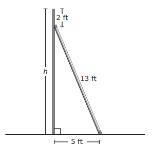 The set designer for a play painted some background scenery on a large piece of plywood. He used a 13-foot-long pole to hold the piece of plywood upright, as shown in the diagram below