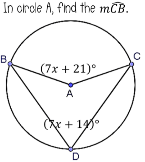 The value of x in the circle