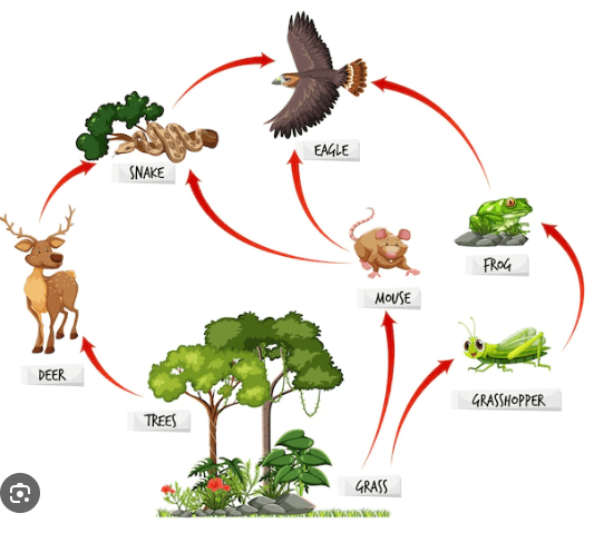 A food chain is a linear sequence showing how energy and nutrients flow from one organism to another in an ecosystem.