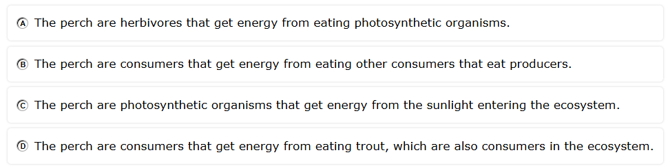Perch use energy to avoid predators. Which statement describes how perch get energy to avoid predators, based on the food web?