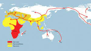 The first humans migrated (or moved from one place to another) from Africa by taking only ONE route or path.False!