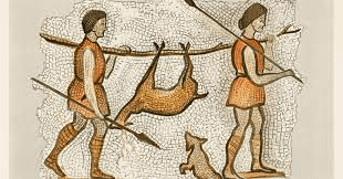 Hunter-gatherer = a person who hunts animals and looks for plants to eat, instead of farming.
