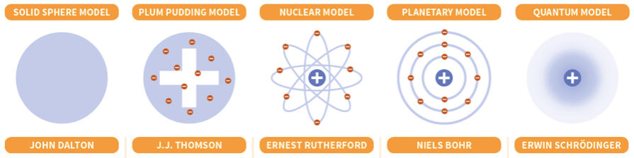 Dalton, Thomson, Rutherford, Bohr, and Schrodinger