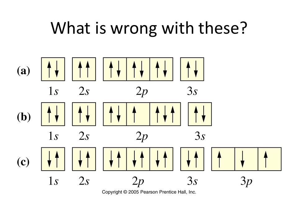 B: 2p orbital has 3 arrows in one orbital; orbitals only carry 2 electrons