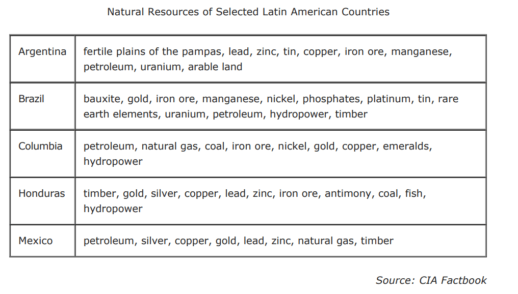 Based on the information in the table, which environmental modification would most likely be common in each of these Latin American countries?