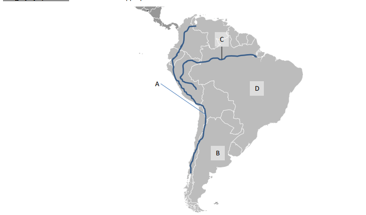 Letter A represents what physical feature in Latin America.