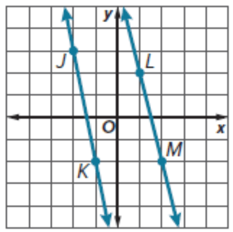 Two lines are parallel if and only if they have the same slope and different y-intercepts.
