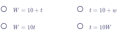 Derrick started a new job at McDonald's. He makes $10 per hour. Which equation models his total weekly earnings (W) in terms of the number of hours he works (t)?