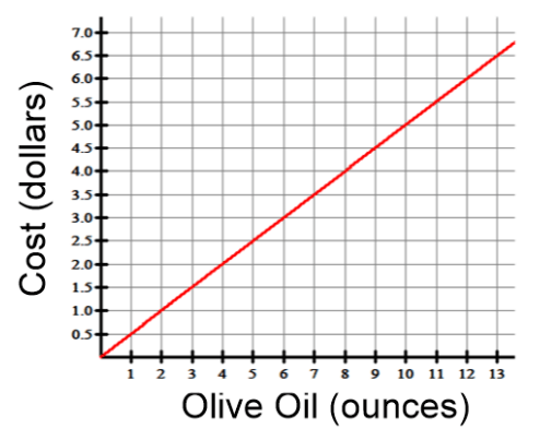 The constant of proportionality is 0.5 it means $0.50 per ounce of olive oil.
