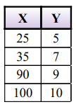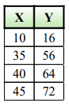 There is a constant ratio between x and y. Each ratio of y/x simplifies to 8/5