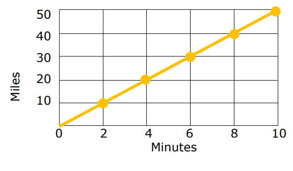 The graph shows the distance that a train traveled over a period of time. What is the constant of proportionality? What does it represent in the context of the problem?