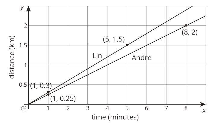- Andre doesn't travel as far as Lin does in the same amount of time.