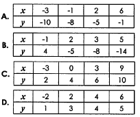 { (-2, 7), (0, 3) , (1, -4) , (5, -2) }