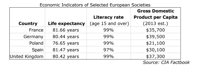 Based on the information in the table, the level of economic development in Europe is best described as —